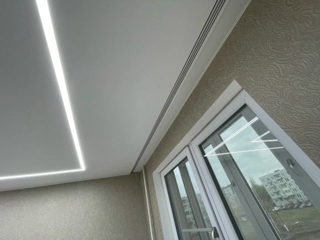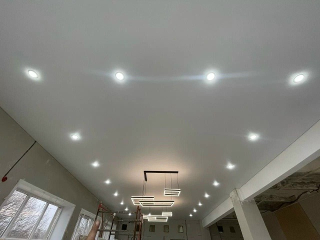 Классический вид идеально ровного потолка. Не бликует.